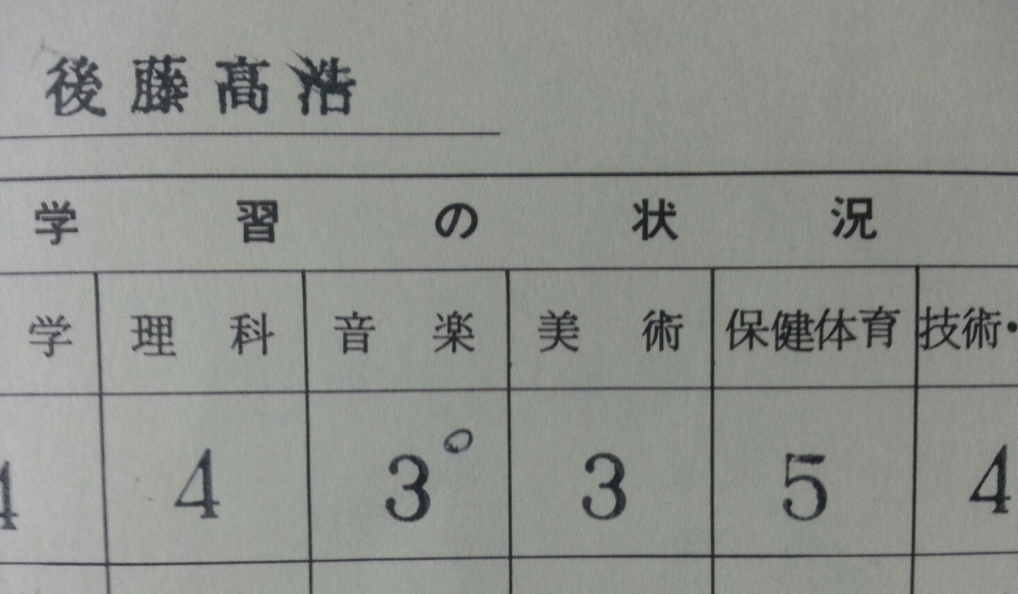 逆に、美術や音楽はほとんど3がついていた記憶があります。自分なりには頑張っていたと思うのですが… 音楽の中1の最初の歌のテストで、(声変わりの時期だったこともあり)声が裏返ってしまいみんなに笑われたことがトラウマになっていたり、美術の絵は小学校でのある「事件」以降苦手意識が渦巻いていて自分でも無理だと諦めていたところがありました。この2科目については、どんなに頑張っても5は取れないし、まぁ仕方ないと達観していたのです。