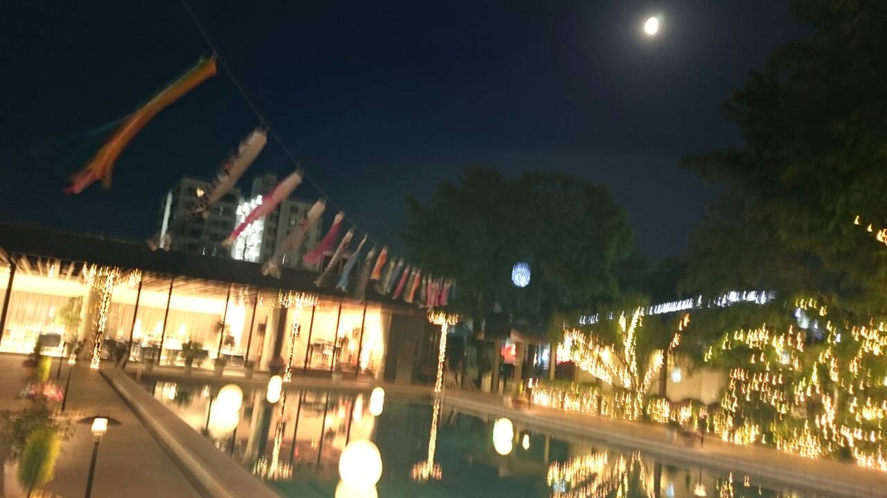食事も最高でしたし(あまりにも旨すぎて写真を撮るのを忘れた…)、プールサイドが解放してあって、そこのベンチでくつろいでいたら、ちょうど満月が目の前にあって、なかなか風流でした(写真左)。