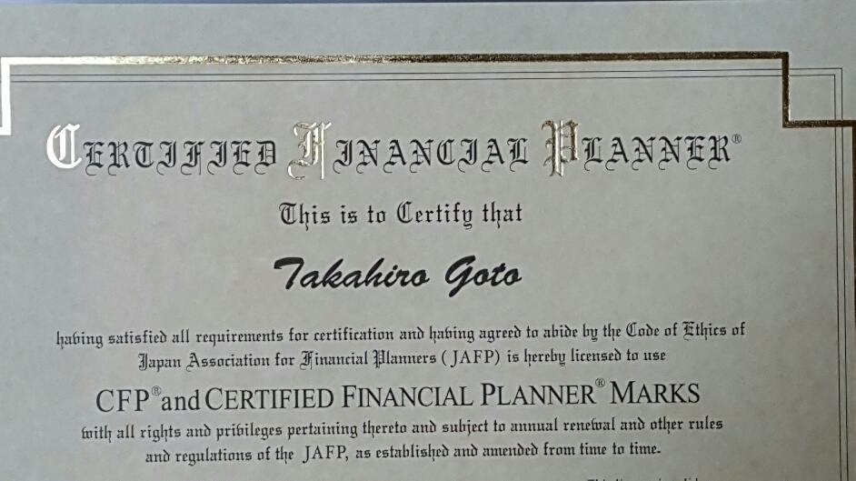 この5年間、私は毎年1つずつ新しい「資格」を取得しています。もちろん、仕事の上で必要に迫られたり、役に立つものに限定していますので、まったく趣味の世界というわけではありません。進路アドバイザー、起業アドバイザー、心理カウンセラー、仲人士(マリッジアドバイザー)、ファイナンシャルプランナーetc…です。ちょうど昨日、ファイナンシャルプランナーの国際最上級資格である、CFP(R)の認定証が届きました。(写真) これは結構難しい資格で、銀行や証券会社・保険会社等に勤務するプロの方でもなかなか合格できないそうです。