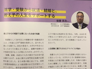 6月1日発刊の「FPジャーナル」という協会の機関誌に、私のことを大々的に取り上げていただきました。私のような立ち位置で仕事をしているFPが珍しいということもあると思います。日本FP協会の会員に毎月送られてれて来るものですが、会員は現在20万人ほどいるので、なかなか宣伝効果が大きいですね。実際、FPの知り合いの何人かから、「見たよ」という連絡が入りました。中には、私がFPをやっていることをそこで初めて知って、驚いて連絡して来てくれた方もいました。