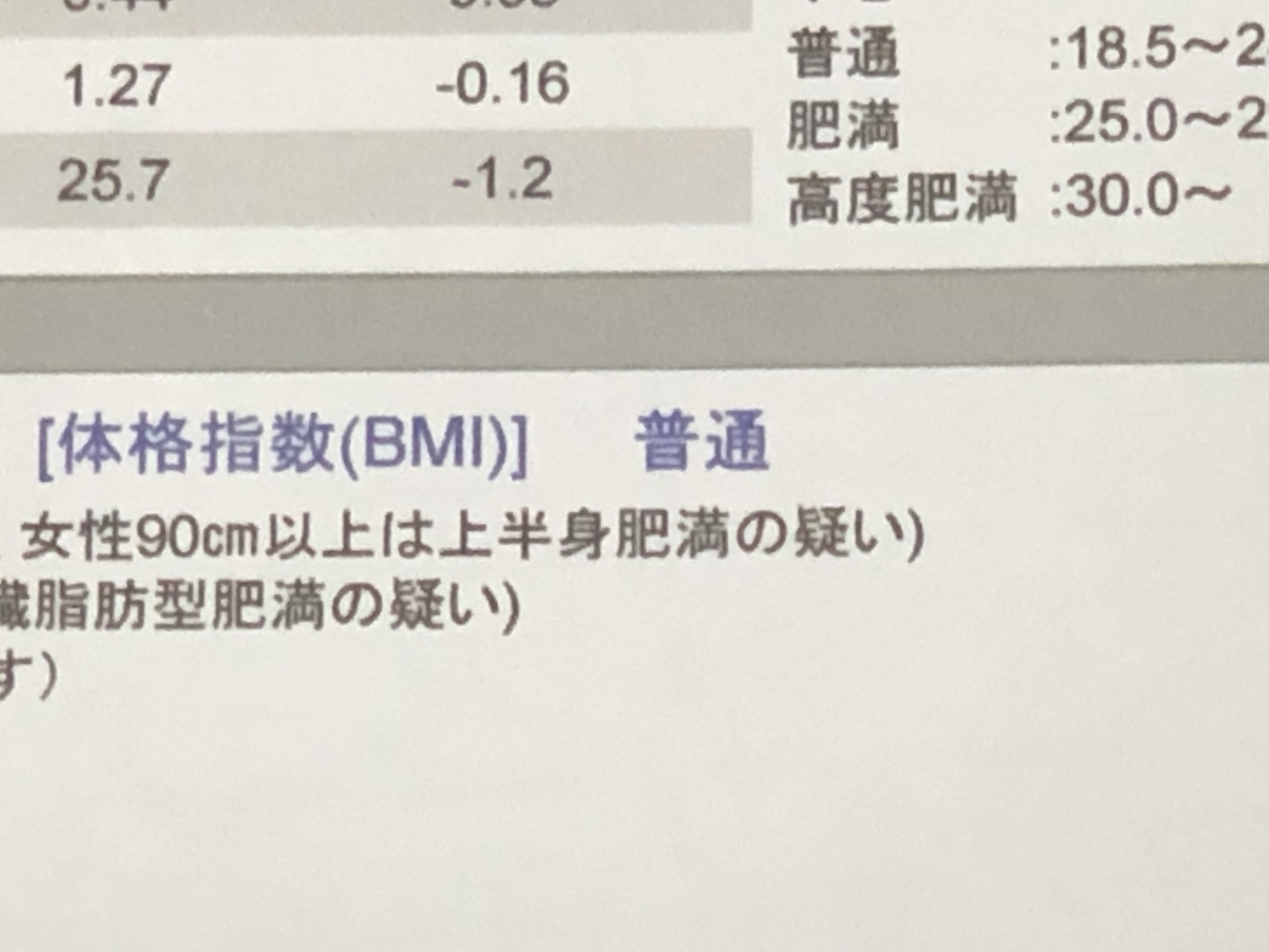 健康診断の結果が出ました。ついにBM Iの値が25を下回り(24くらいです)、報告書から「肥満」の2文字が消えました。20代後半にこの肩書き拝命して以来、実に四半世紀ぶりの偉業(?)です。最近の私しか知らない方は信じられないと思いますが、私は20代半ばくらいまでは「やせ」に分類されていたのです。