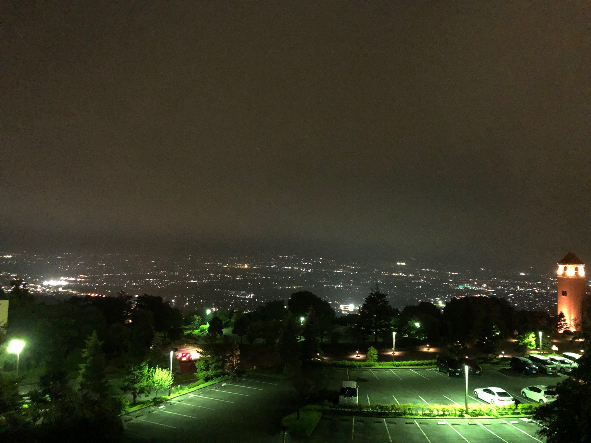 写真は、「日本三大夜景」の1つの場所の昼と夜バージョンです。写真では分かりにくいのですが、昼の写真の方は、真ん中やや右くらいに結構近い富士山が見えていました。