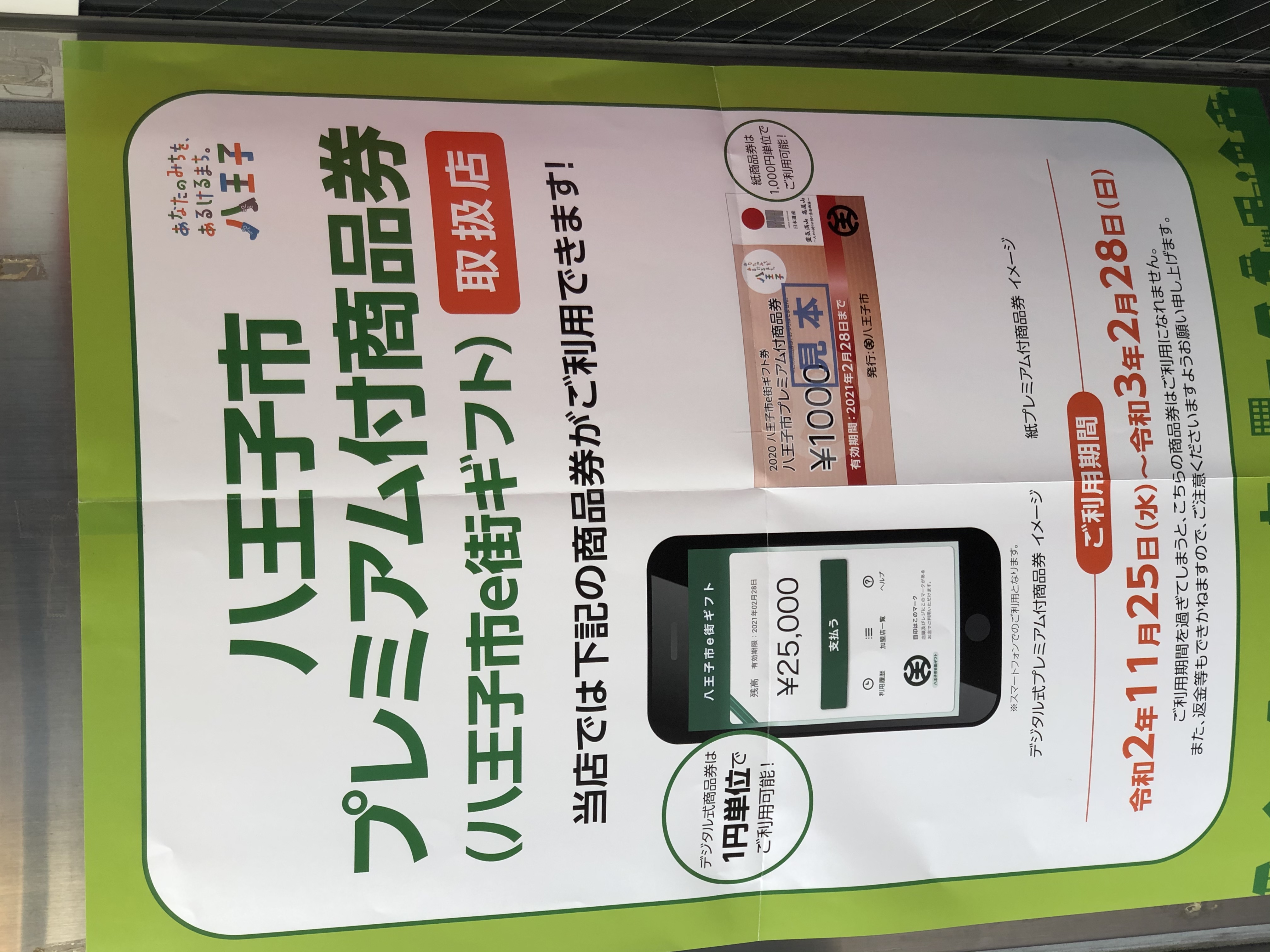 八王子市プレミアム付商品券が、本日よりGSでも使えるようになりました。この商品券は、コロナ禍において地域の経済の活性化のために、市の肝いりの政策として八王子商工会議所が中心となって運営しているものです。