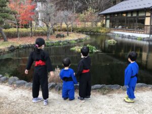 もう年内最後だと思うので、こんなチャンスを逃してはならじと、朝起きてどこに行きたいかアンケートを取りました。「イーアス!」「イオン!」「スーパーカット!」(髪を切りたいという意味です笑)と夢のない答えが続く中で、「忍者!」と答えた男子が… 一瞬間があった後、声を揃えて「いいねー、忍者行こー!」と。