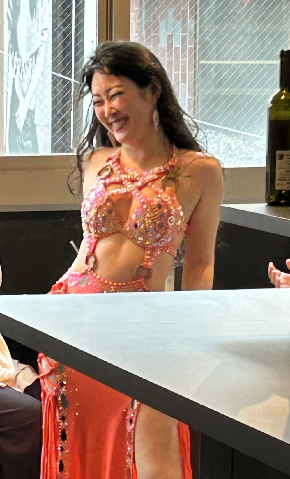 妻は皆さんをダンスの世界に誘っているようですが、(特にベリーダンスは)なかなか敷居が高いようで、「いやいやそれはちょっと…」という反応をされてしまうようです。聞くところによると、(バレエ等と違って)ベリーダンスは、子育てが一段落した30~40代で始める人が多いのだそうです。(我が家の子育ては現在進行形で、まだ一段落していませんが…) 運動が得意だった方ばかりでもないようです。他の運動はまったくダメだけど…という方も結構いると聞きました。うちの妻も、通信簿で言うと「ほとんどの科目が5だったけど体育だけ常に3だった」という話はよく聞いていましたし、典型的な運痴だったようです。(ちなみに私は、「ほとんど3か4だったけど、体育だけ常に5」でした。苦笑) 1人目の妊娠・出産の直前に初めてダンスの世界に飛び込み、4回の「産休」を挟んで今に至ります。まだダンス歴は10年くらいなので、その世界ではまだまだひよっこだそうです。なので、興味があおりであれば、ぜひ妻に声をかけていただくといいと思います。本当に基礎から習うことができますし、ショーやオーディションに出るのでなければ、衣装はTシャツ・ジャージでいいそうです。お腹を出さなくてもいいみたいですよ。(^^♪