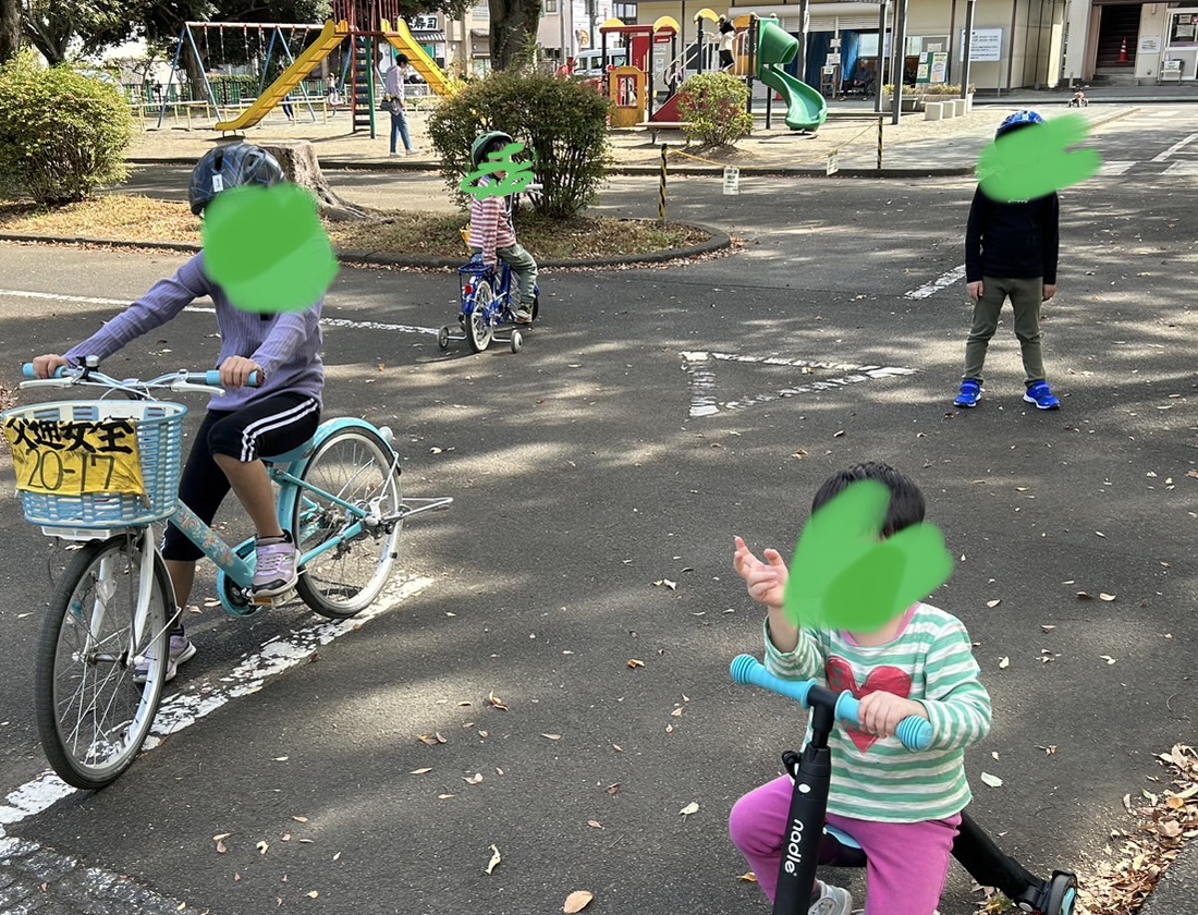 結局、高尾の「交通公園」で自転車(三輪車)特訓をすることになりました。日曜日はいつも混んでいて、サイズが合う自転車を借りるのがなかなか難しいのです。このチョイスは当たりでした。人があまりいなくて、4人ともたっぷり練習することができました。