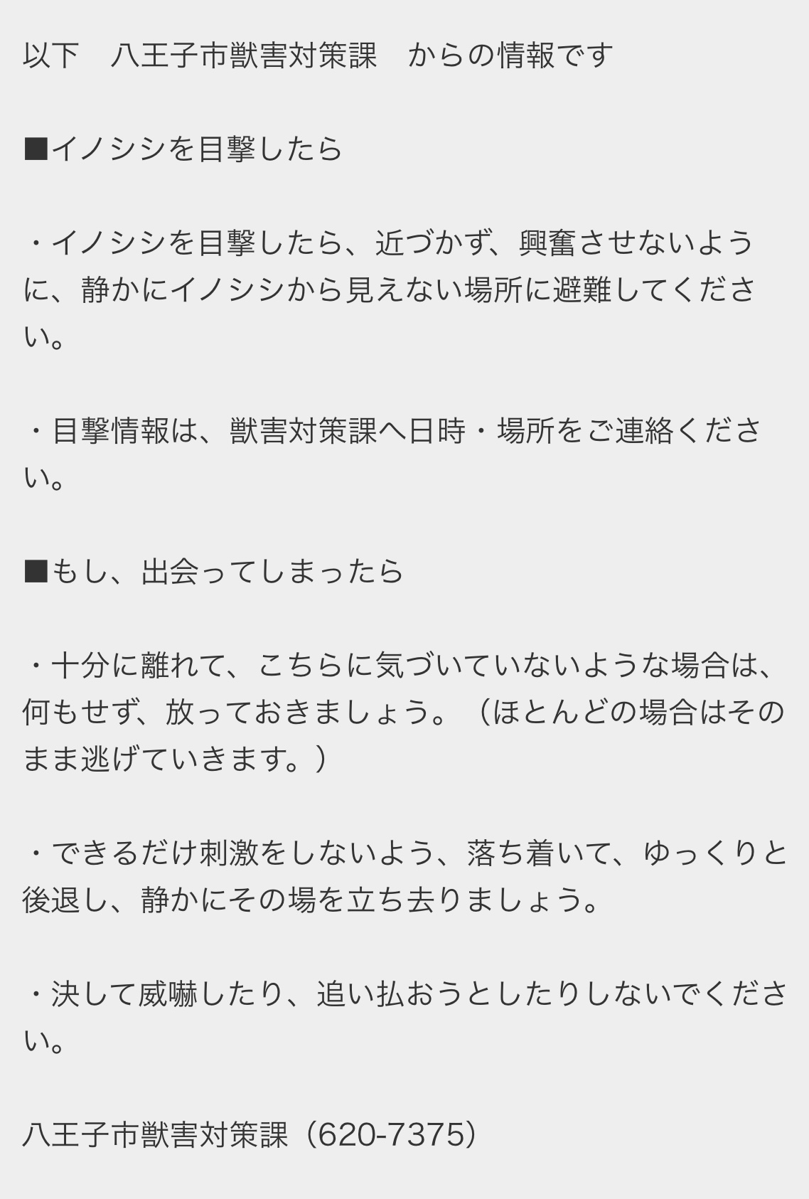 八王子市の獣害対策課からの情報を共有しておきます。