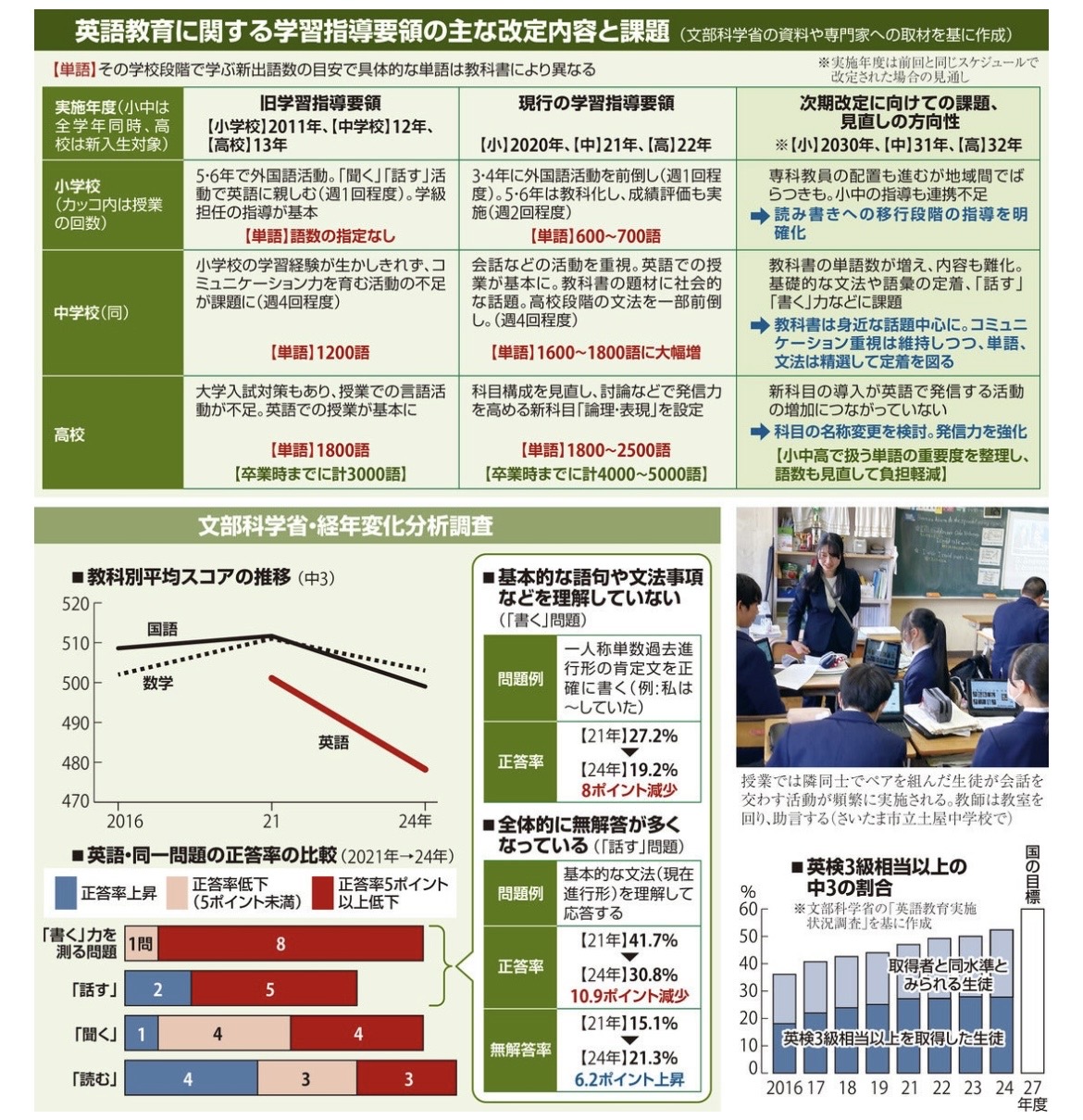 文科省が、英語教育の失敗を(私の知る限り初めて)正式に認めました。現在、次の学習指導要領改訂に向けての議論が様々行われていますが、その途中経過をまとめたものです。この数年間で特に中学生の英語の学力が大幅に低下したことは、教育に携わっている者なら誰でも知っている事実です。